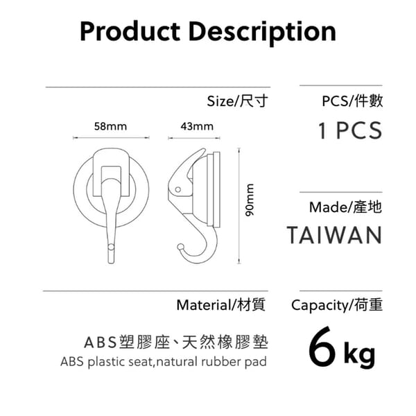 Strong & Secure: Supports up to 6kg with patented suction technology.