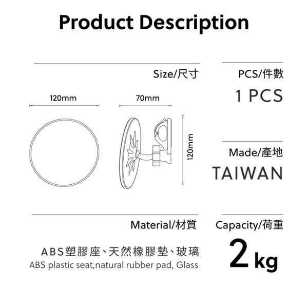 Strong Suction Power – Patented vacuum technology secures to tiles, glass, mirrors, and slight irregularities (up to 0.4mm).