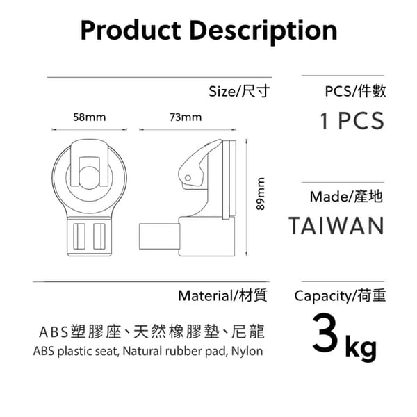 Strong Suction Power – Patented vacuum suction secures on smooth surfaces (up to 0.4mm unevenness), supporting up to 3kg.