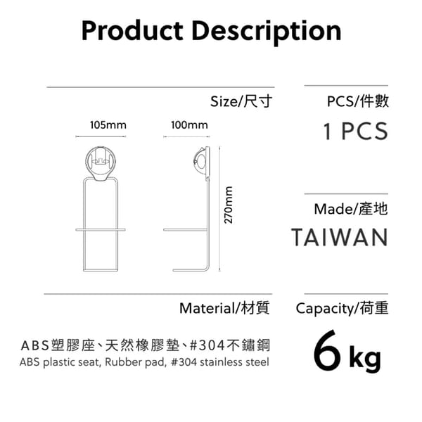 6kg Load Capacity – Durable enough to securely hold hairdryers, bottles, towels, and more, offering versatile bathroom storage.