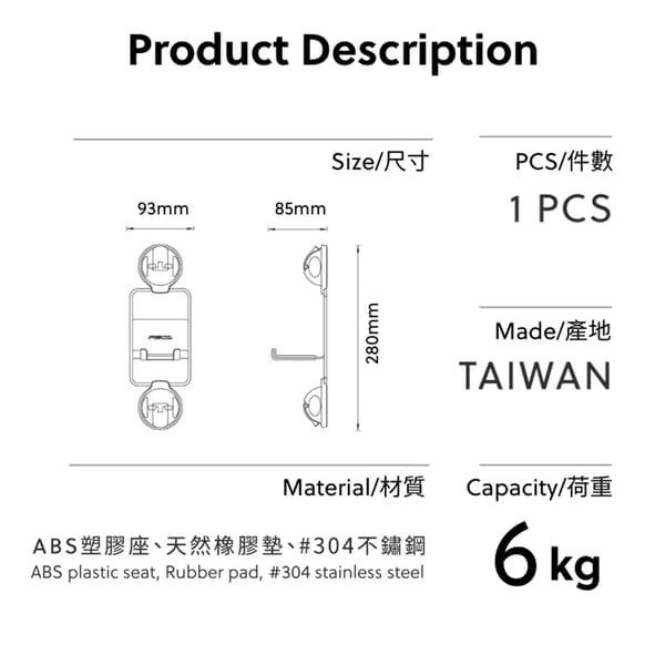 6kg Load Capacity – Holds heavy items like hair dryers and mosquito rackets.