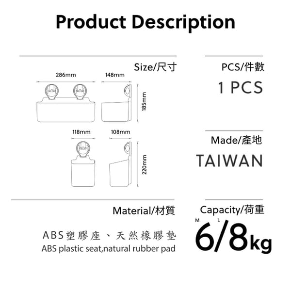 8kg/6kg Load Capacity – Holds up to 8kg on smooth surfaces and 6kg on slightly irregular ones.