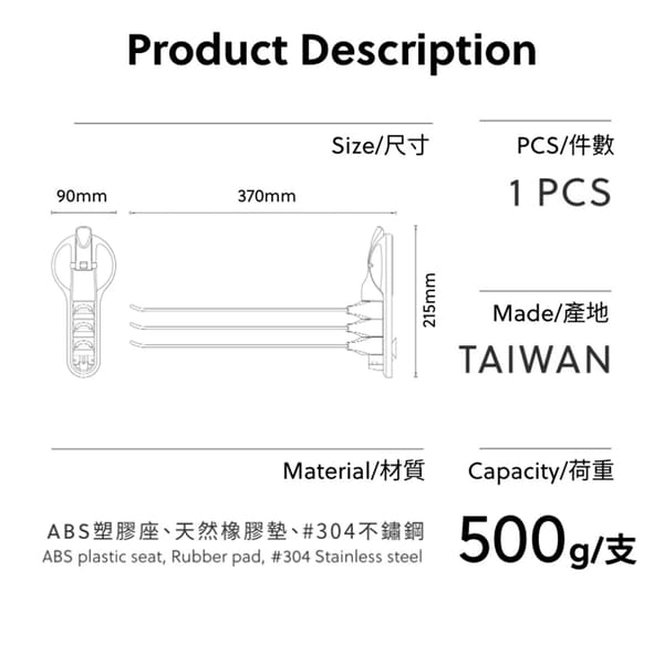 500g Capacity per Bar – Each bar securely holds up to 500g for towels and dishcloths.