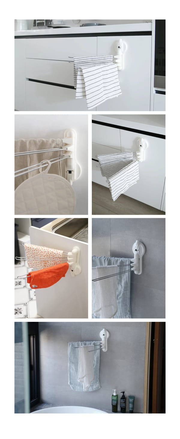 3 Rotating Bars – Independently rotating for easy access and efficient drying, preventing mildew buildup.
